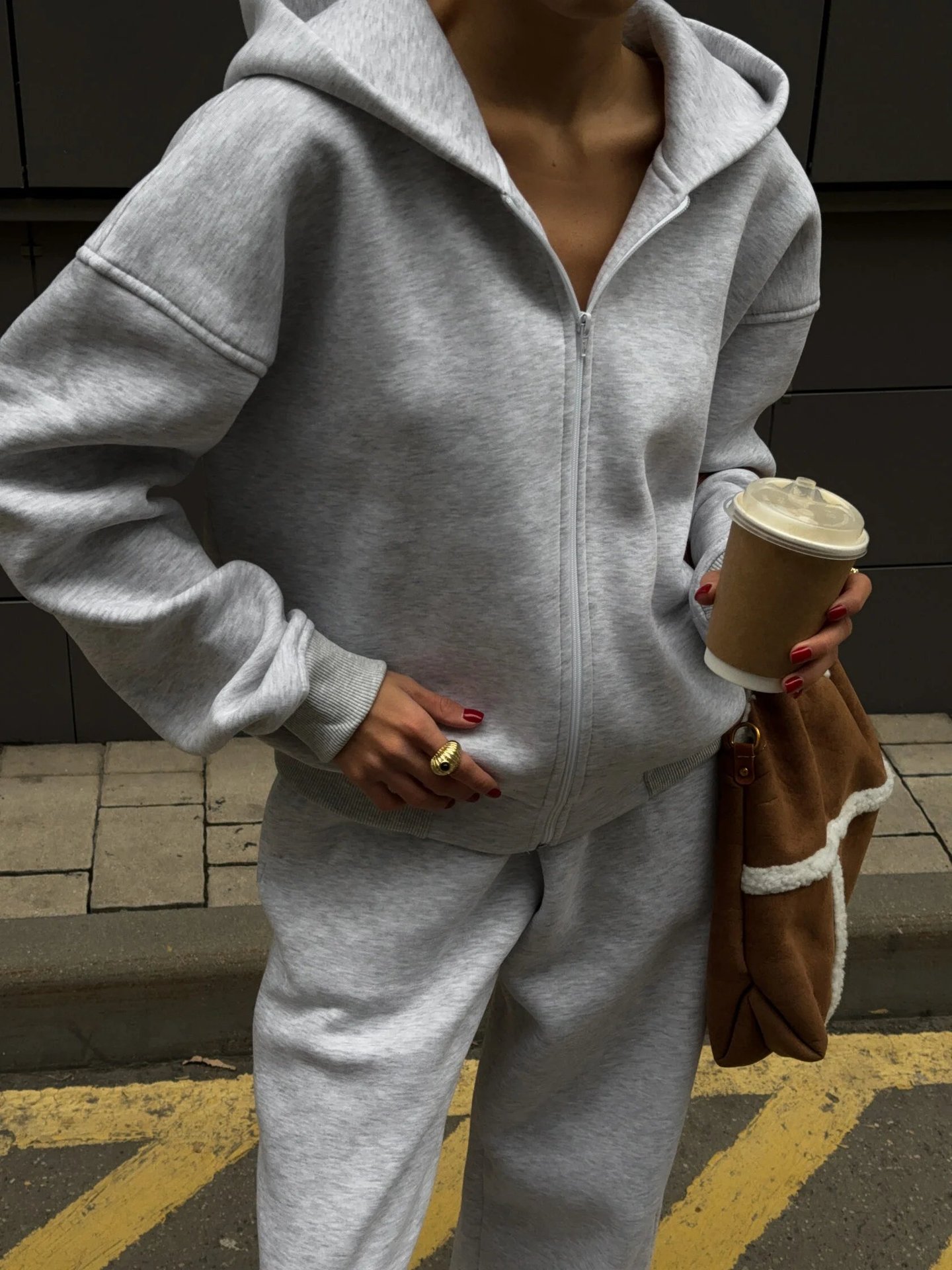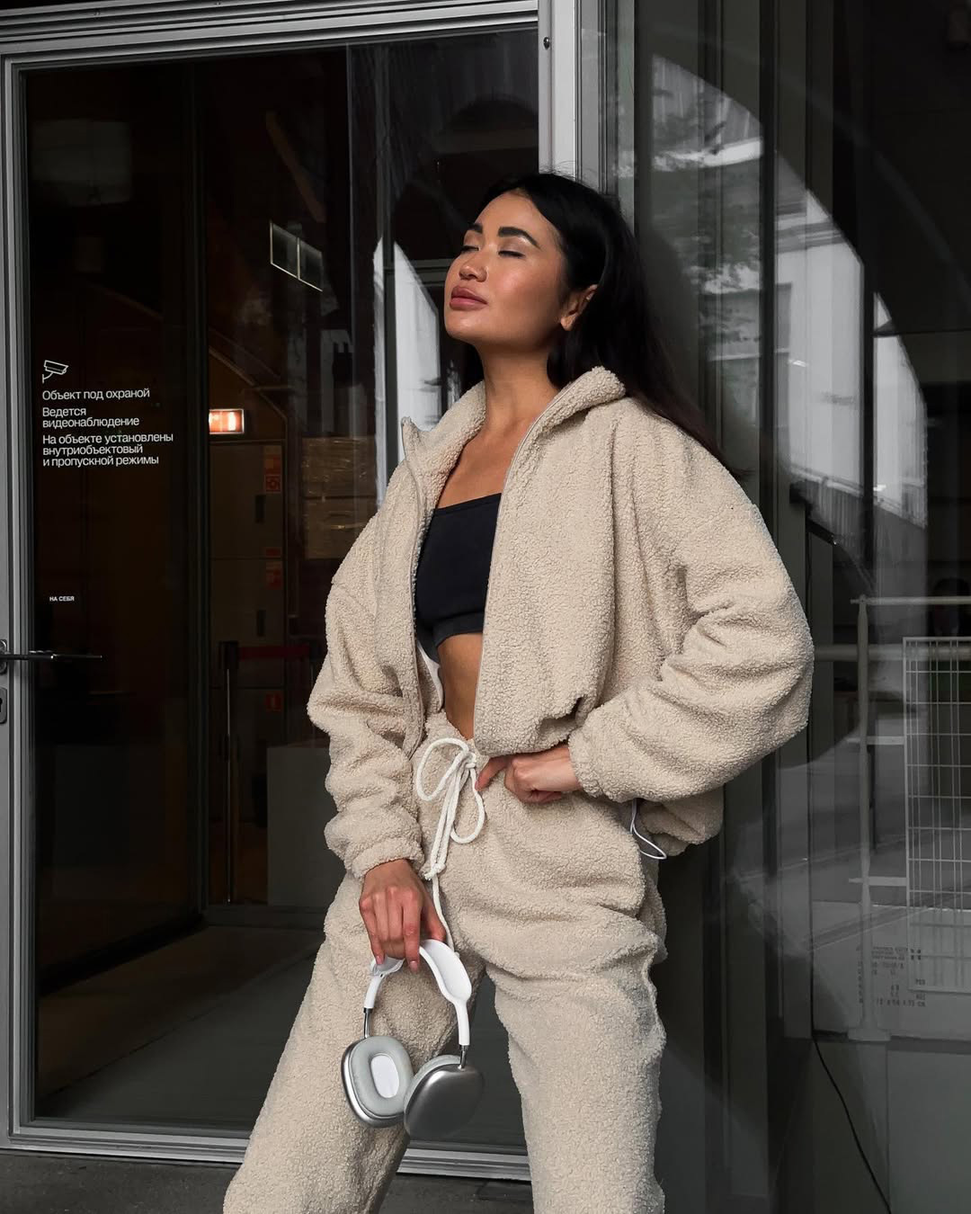 A41 Women's 2025 Autumn/Winter New Fleece Cardigan & Hoodie Set - European American Style | Cross-Border Sporty Casual Outfit