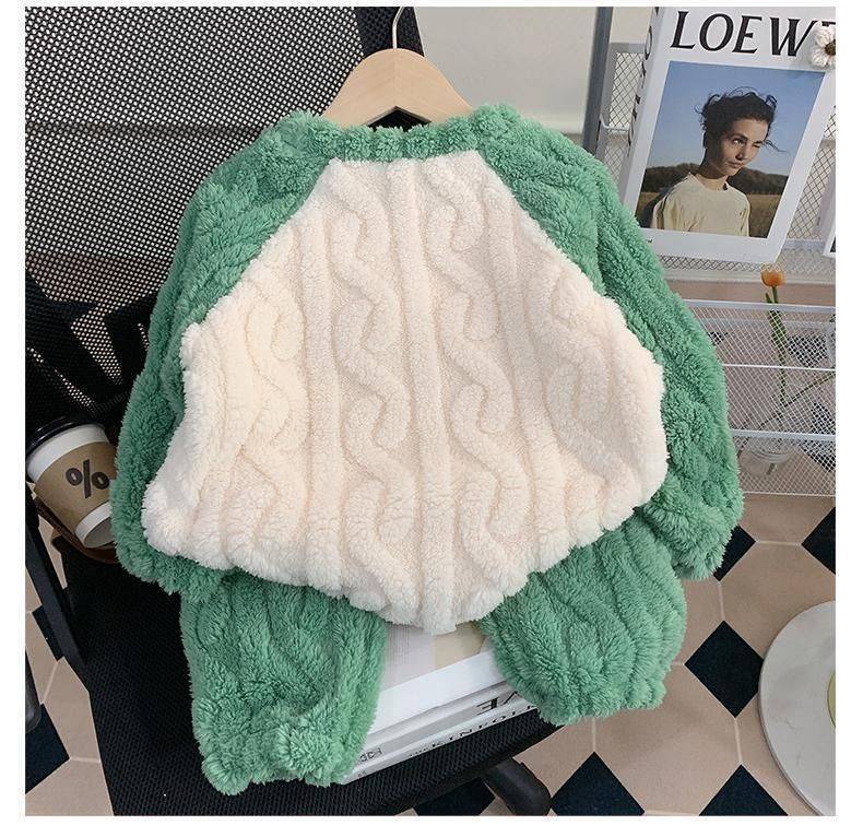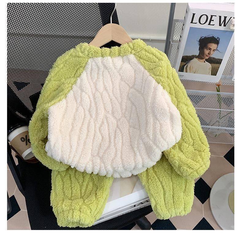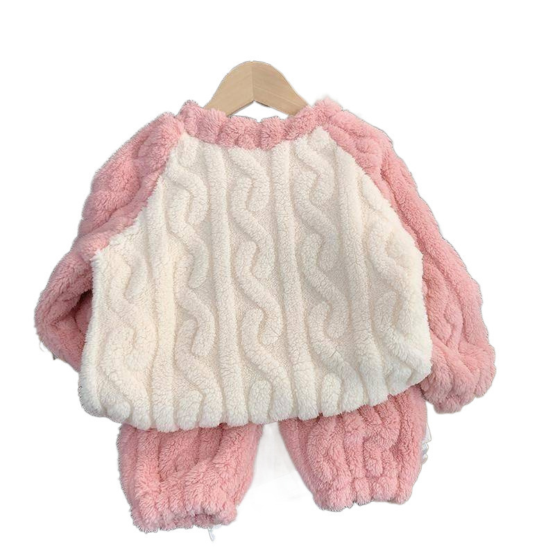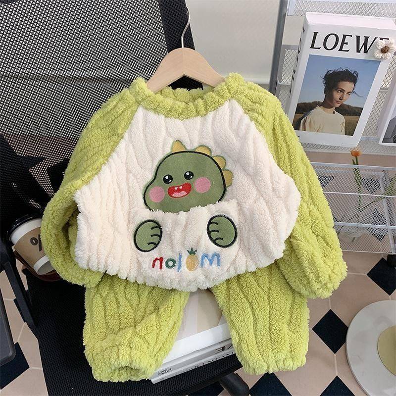 A62 Cross-Border Kids Flannel Pajamas Set Winter Autumn Cute Dinosaur Coral Fleece Loungewear for Girls Toddlers