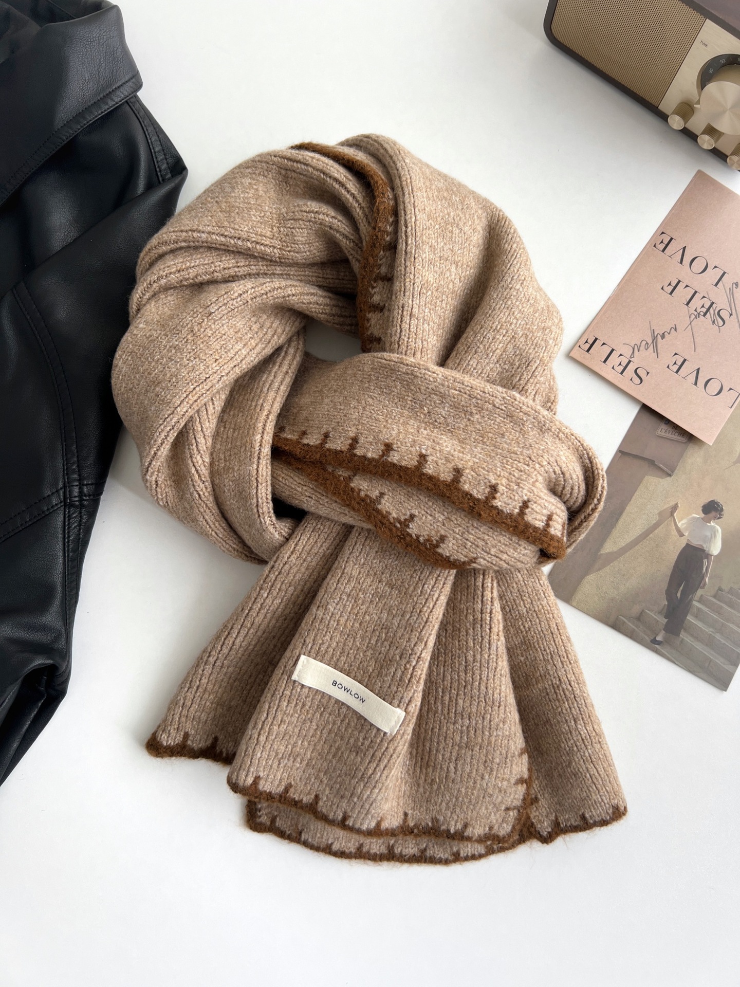 A9 Wool Trimmed High-End Knitted Scarf Off-White Unisex for Students Couples Winter Warm Neck Warmer