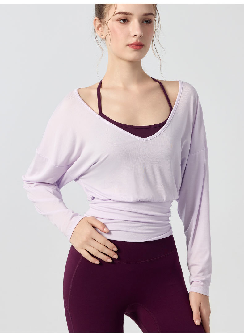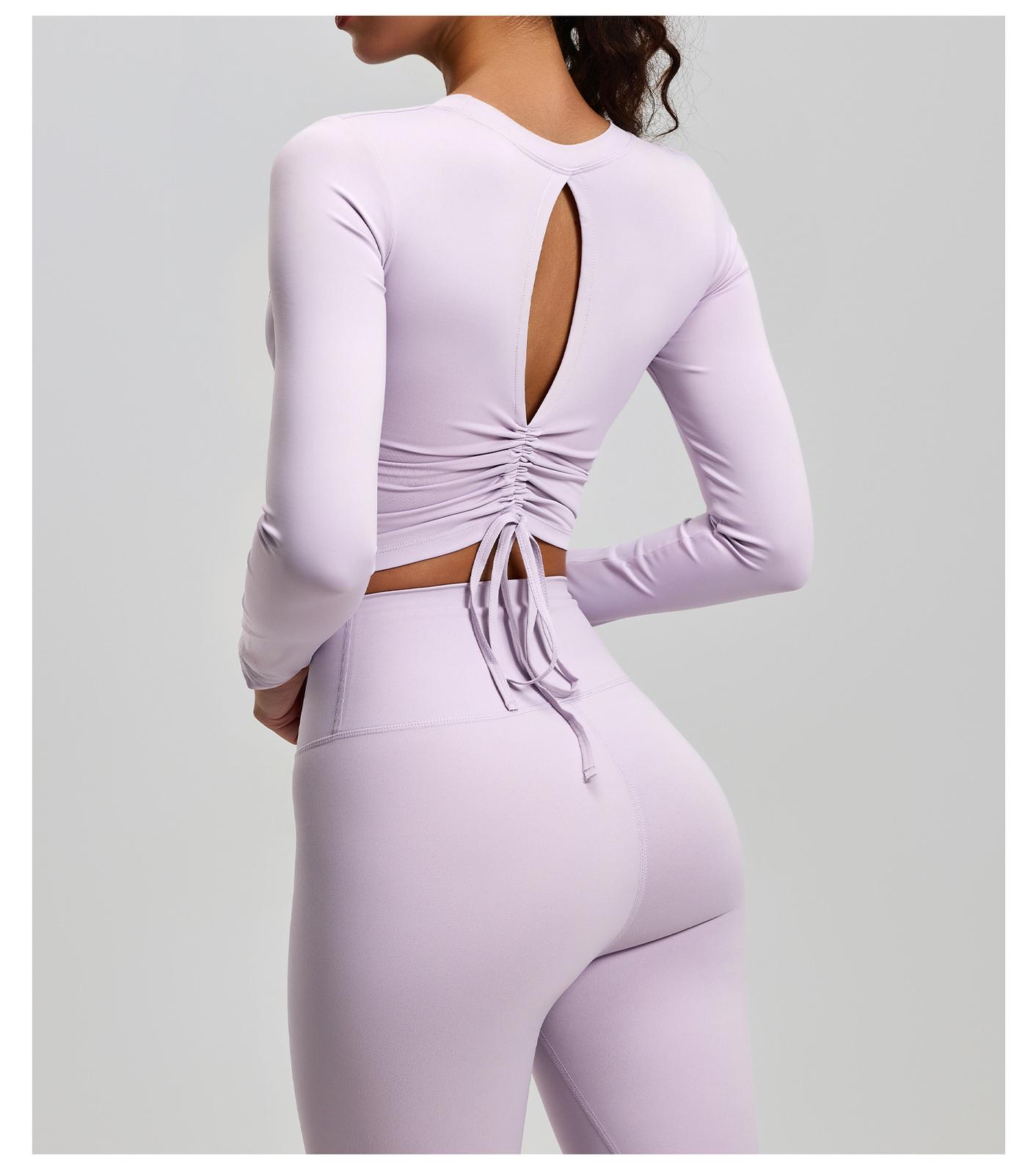 A84 Cross-Border European & American New Style Backless Yoga Top for Women - Ruched Slim-Fit Sports Shirt with Built-in Bra, Long Sleeve for Running & Fitness