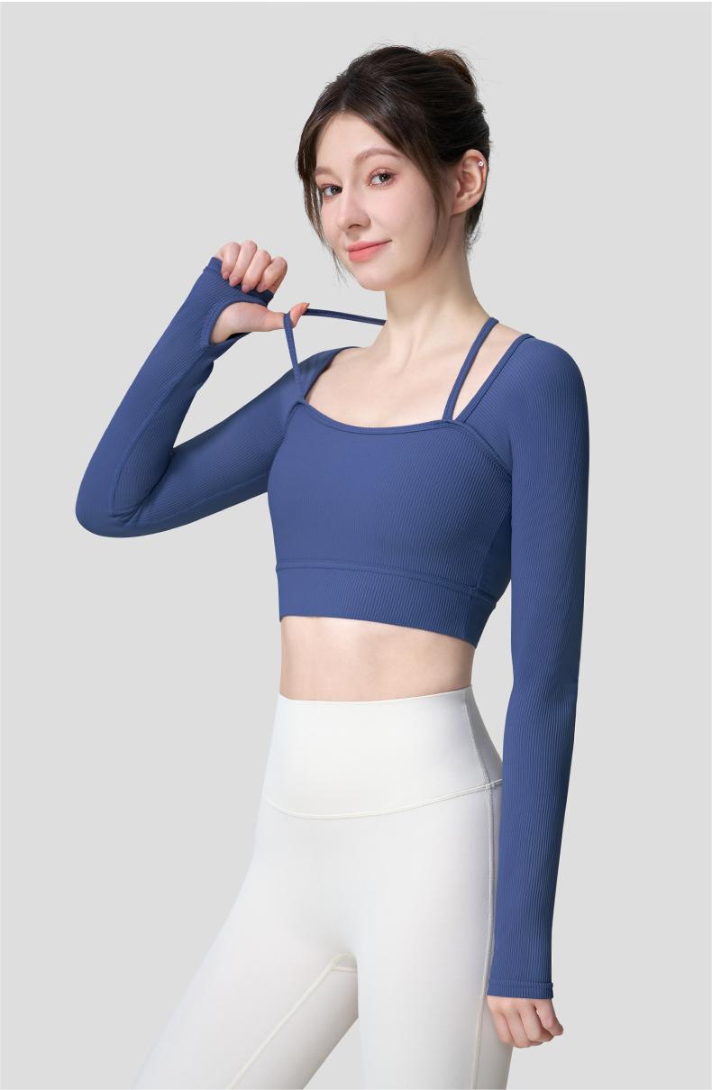 A96 Women's Long-Sleeve Yoga Top with Built-in Bra - Autumn & Winter Style, Slim-Fitting for Pilates, Running & Fitness