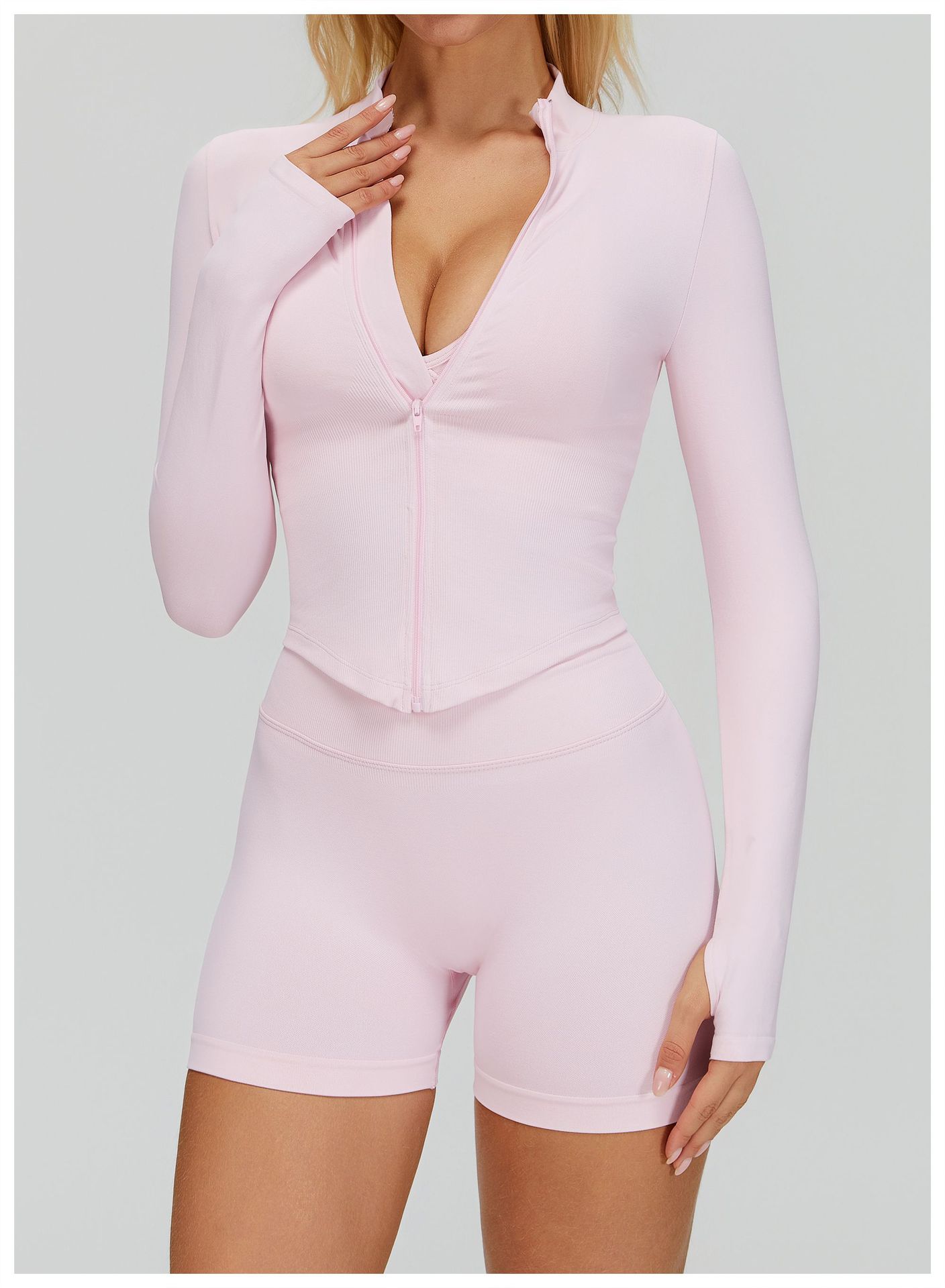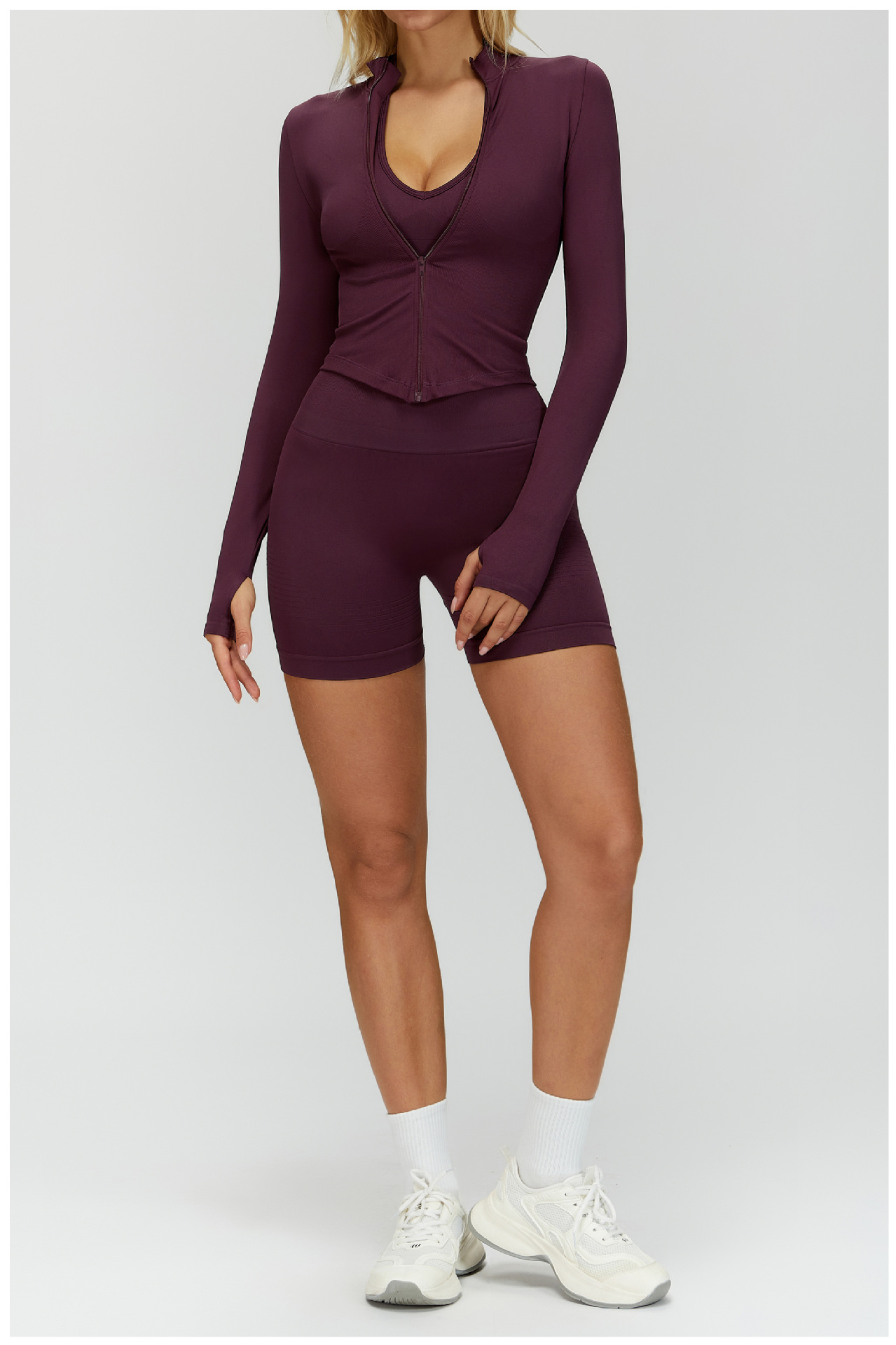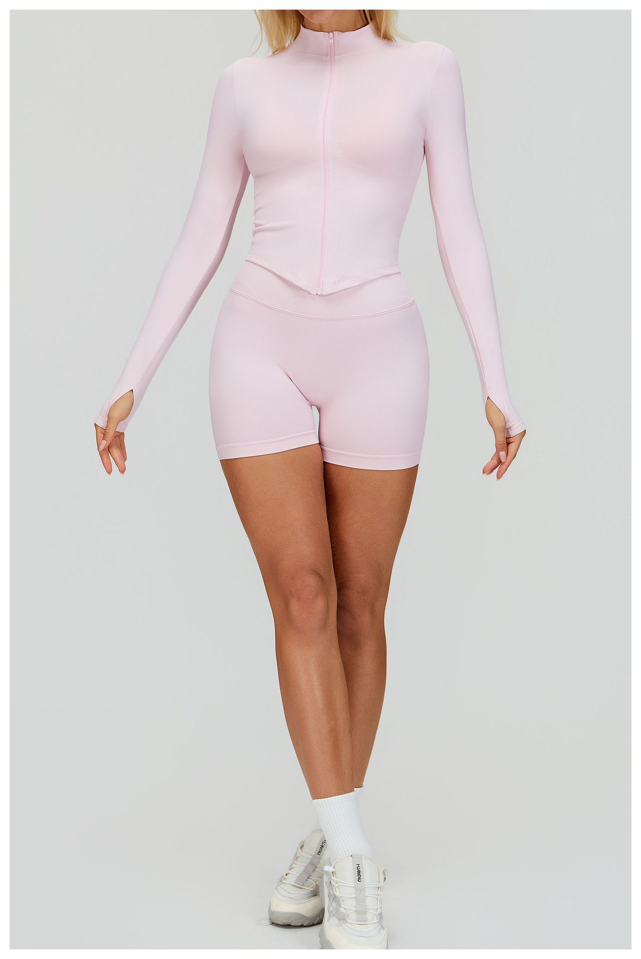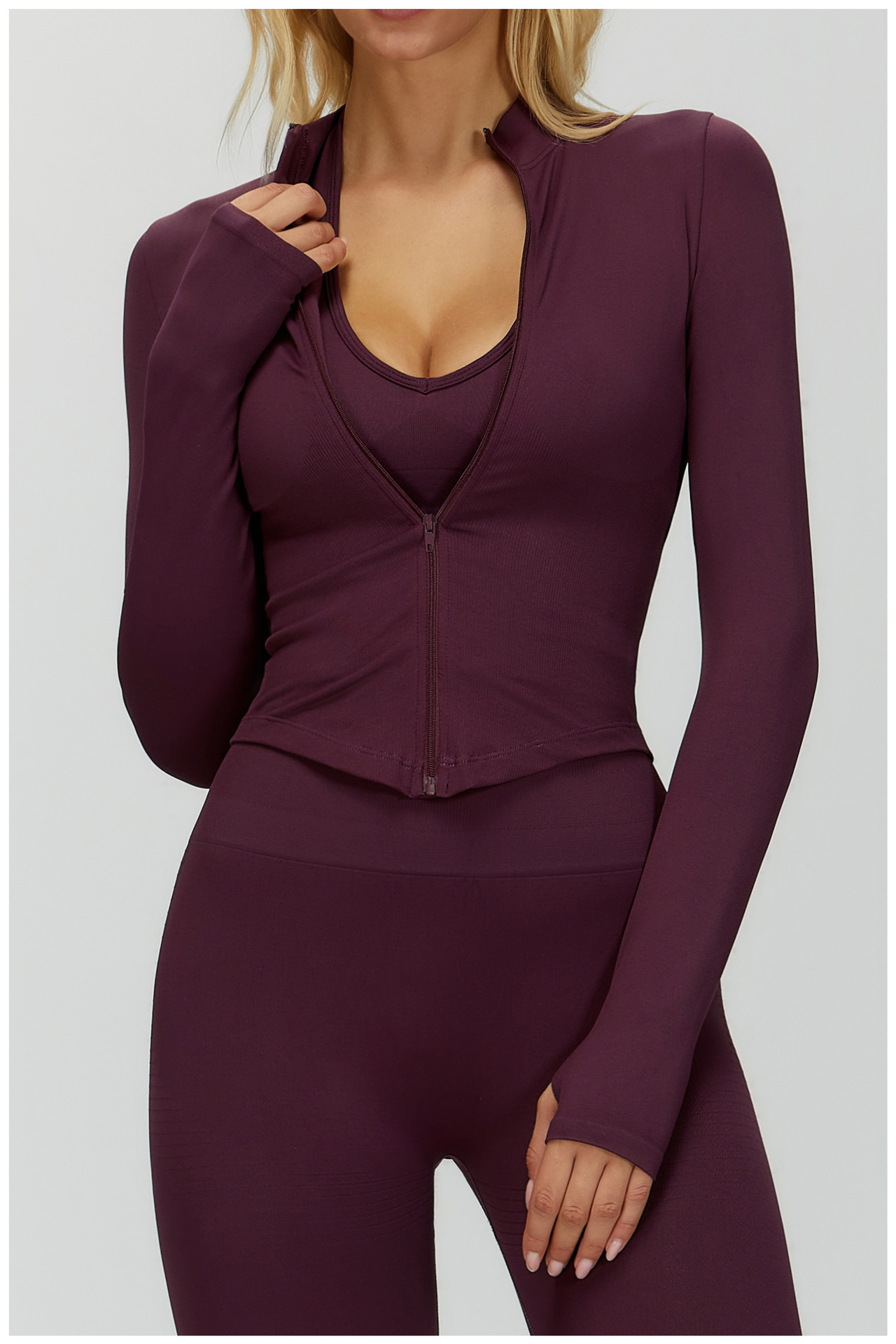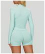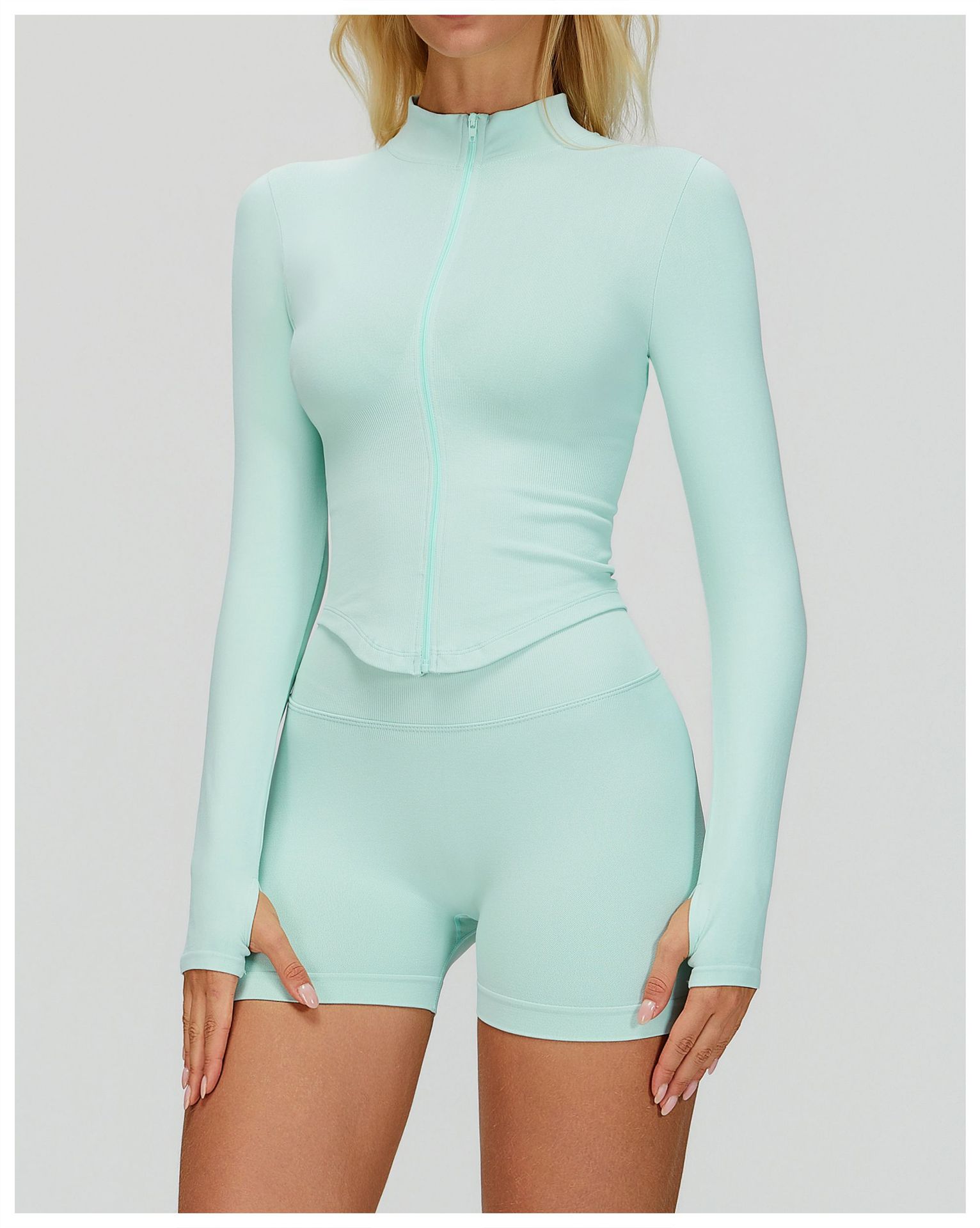 A45 Women's Slim Fit Quick-Dry Yoga Jacket - Stand Collar Zip Long Sleeve, Outdoor Fitness & Workout Top (Euro-American Style)