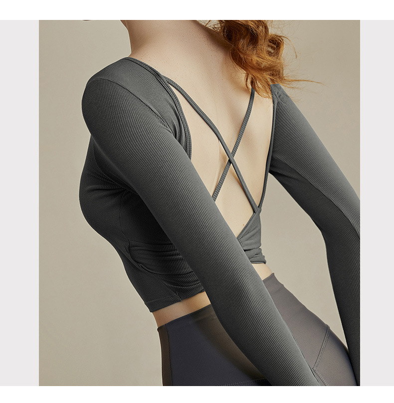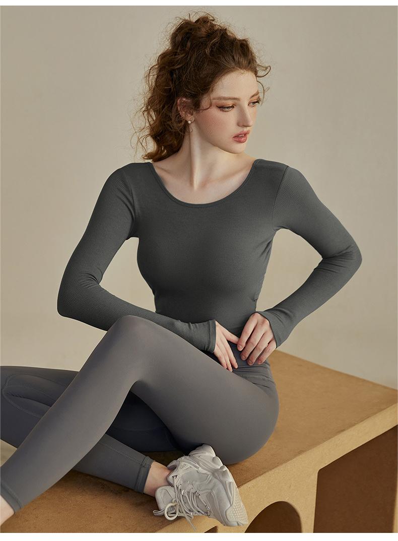 A85 Women's Yoga Outfit with Built-in Bra - Autumn & Winter Long Sleeve Set, Backless Sports Top for Running, Pilates & Fitness