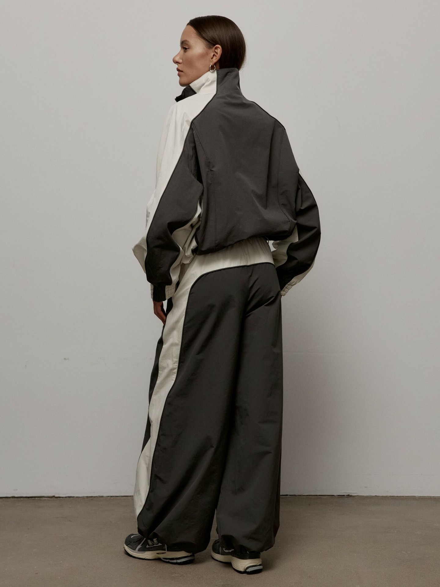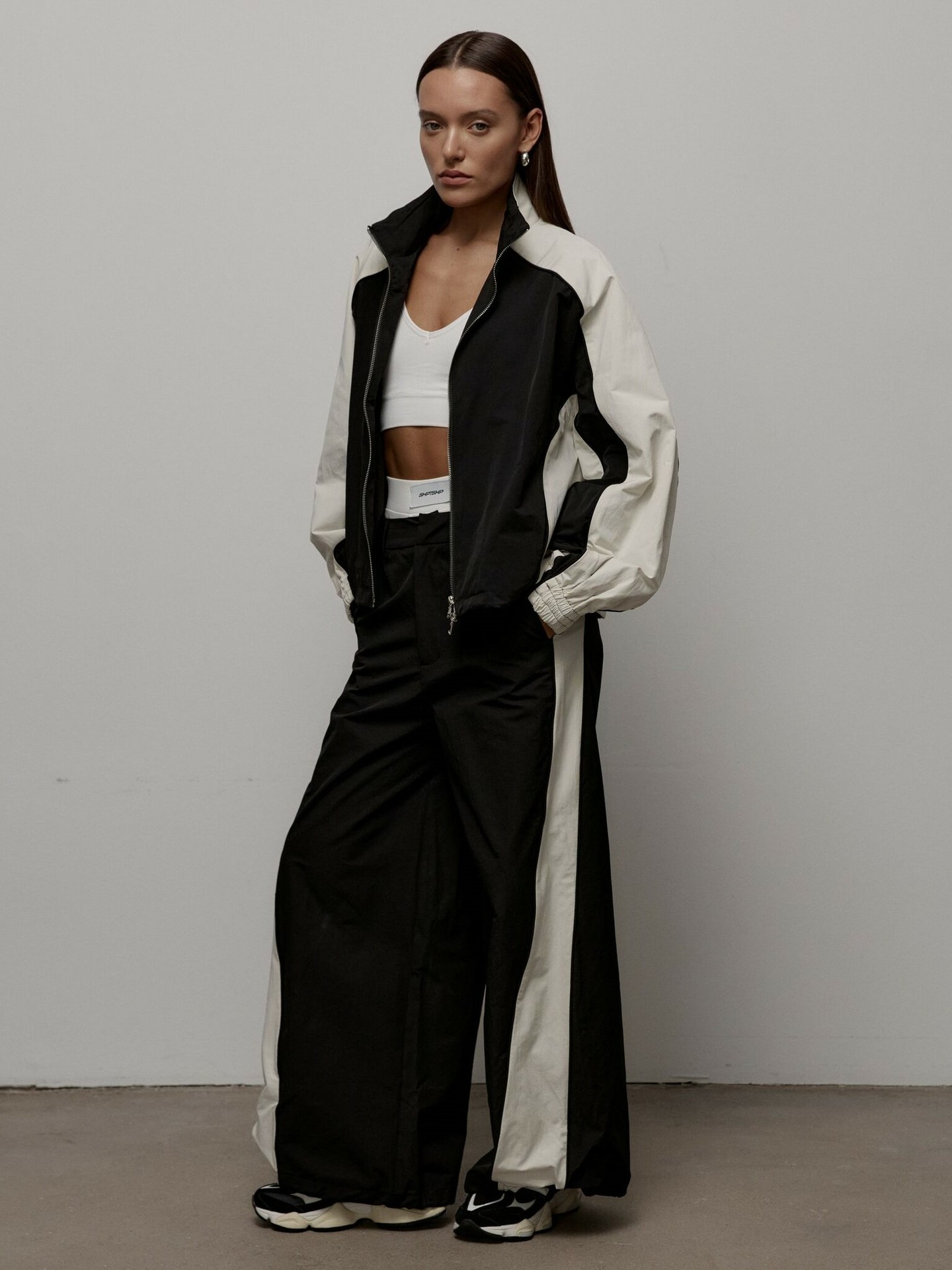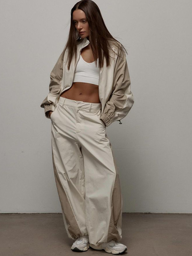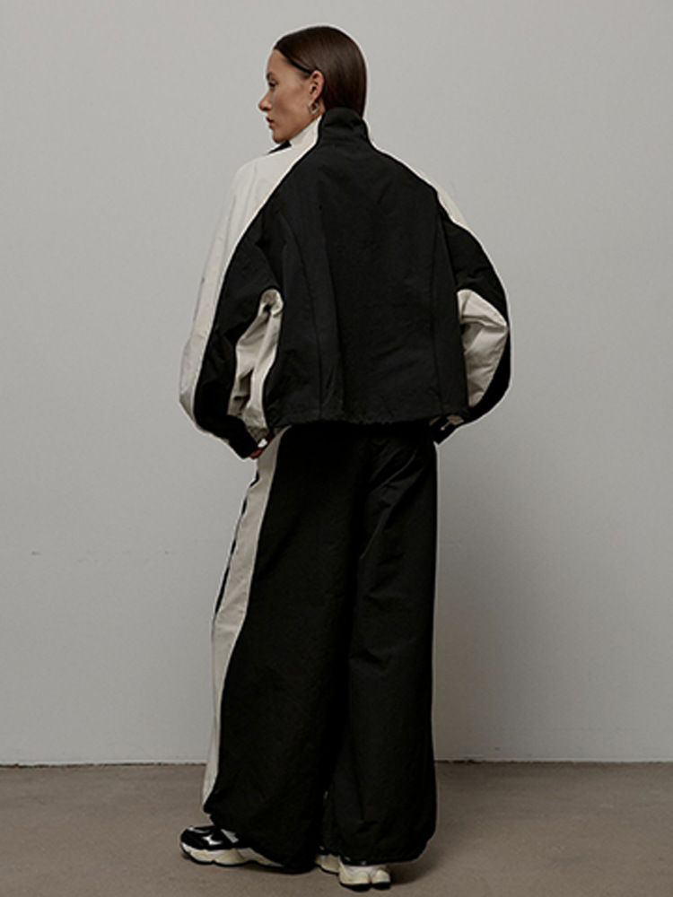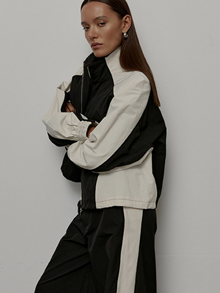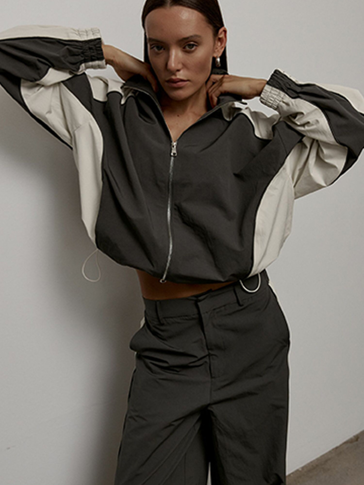 A103 AliExpress Cross-border New Casual Women's Fashion Color Block Drawstring Sports Jacket & Pants Set European American 2-piece