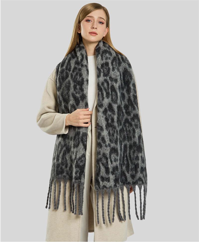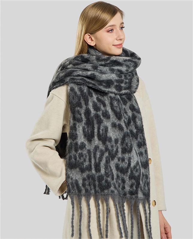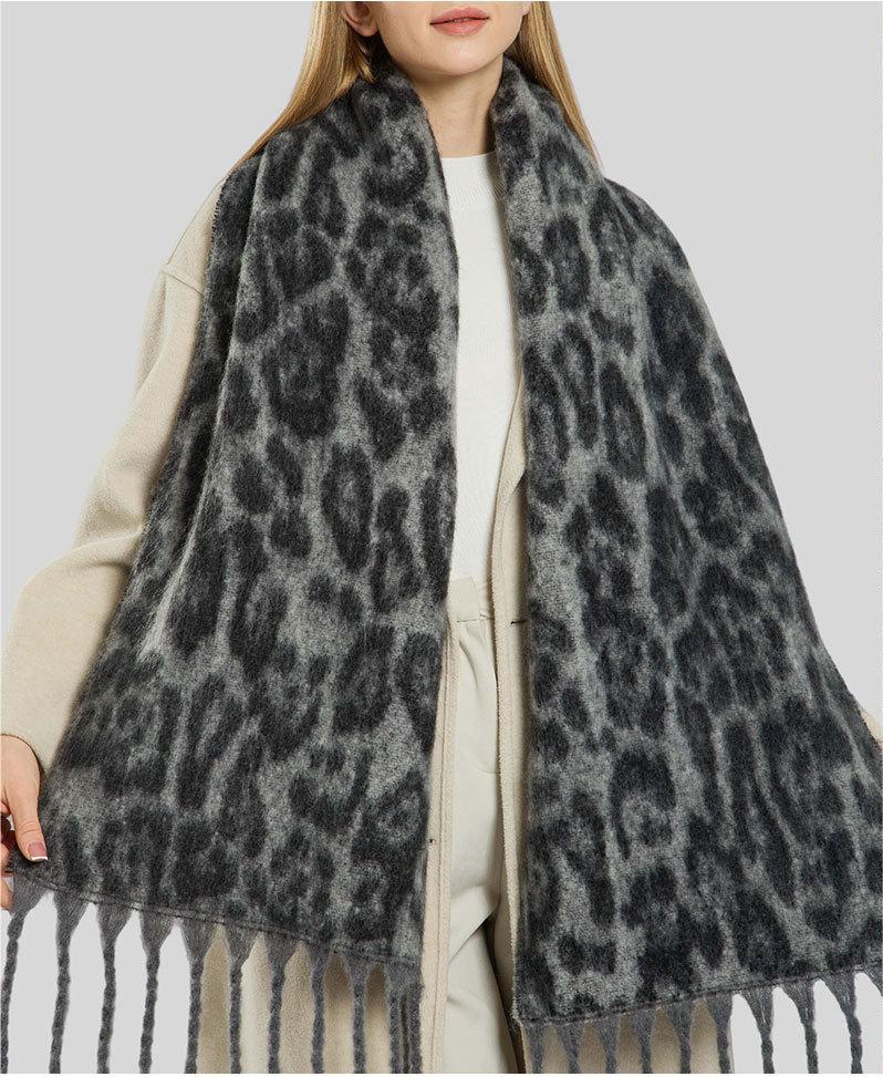 A17 Autumn Winter New Retro Leopard Print Tassel Scarf for Women - European & American Style, Warm, Versatile Shawl, High-End Fashion Neck Wrap