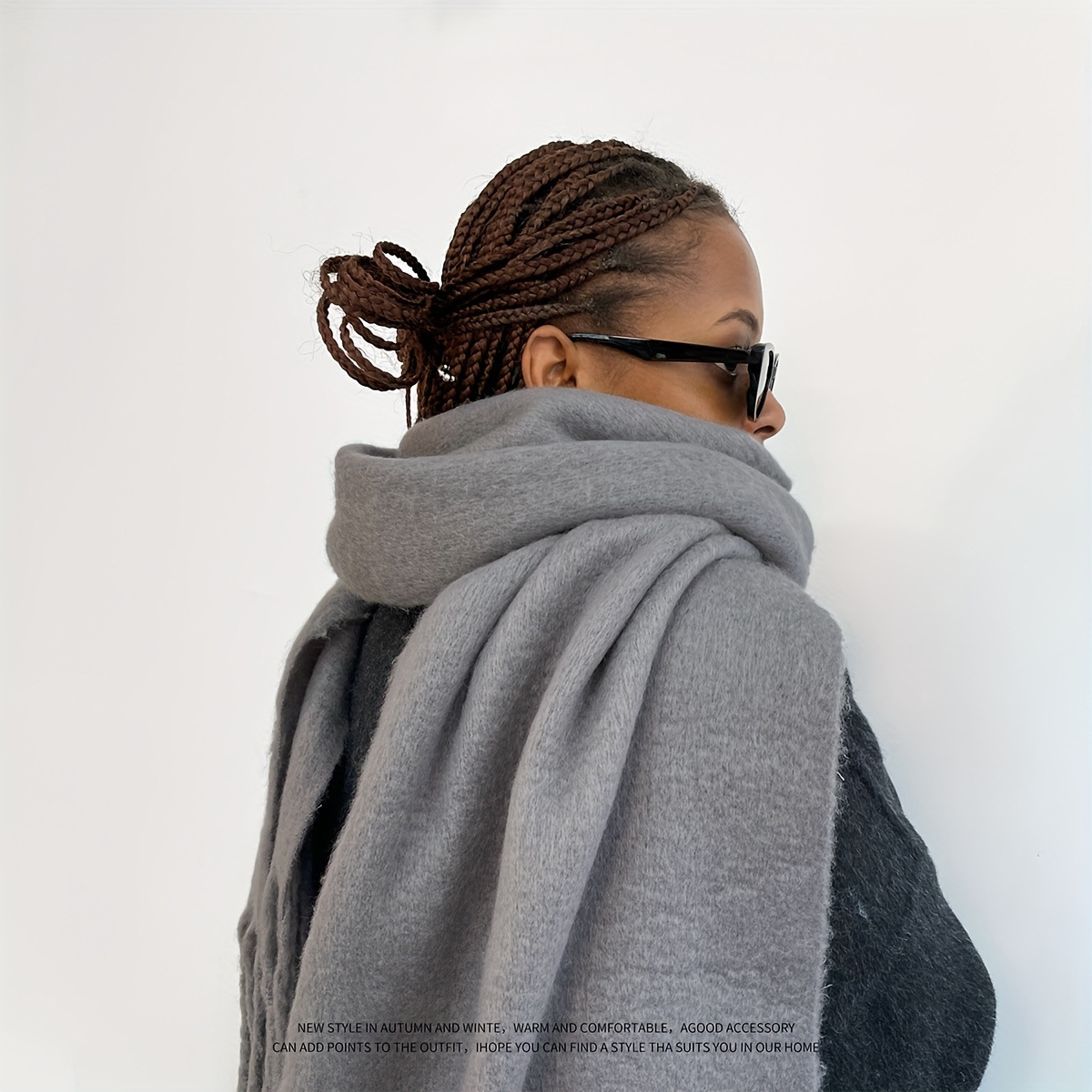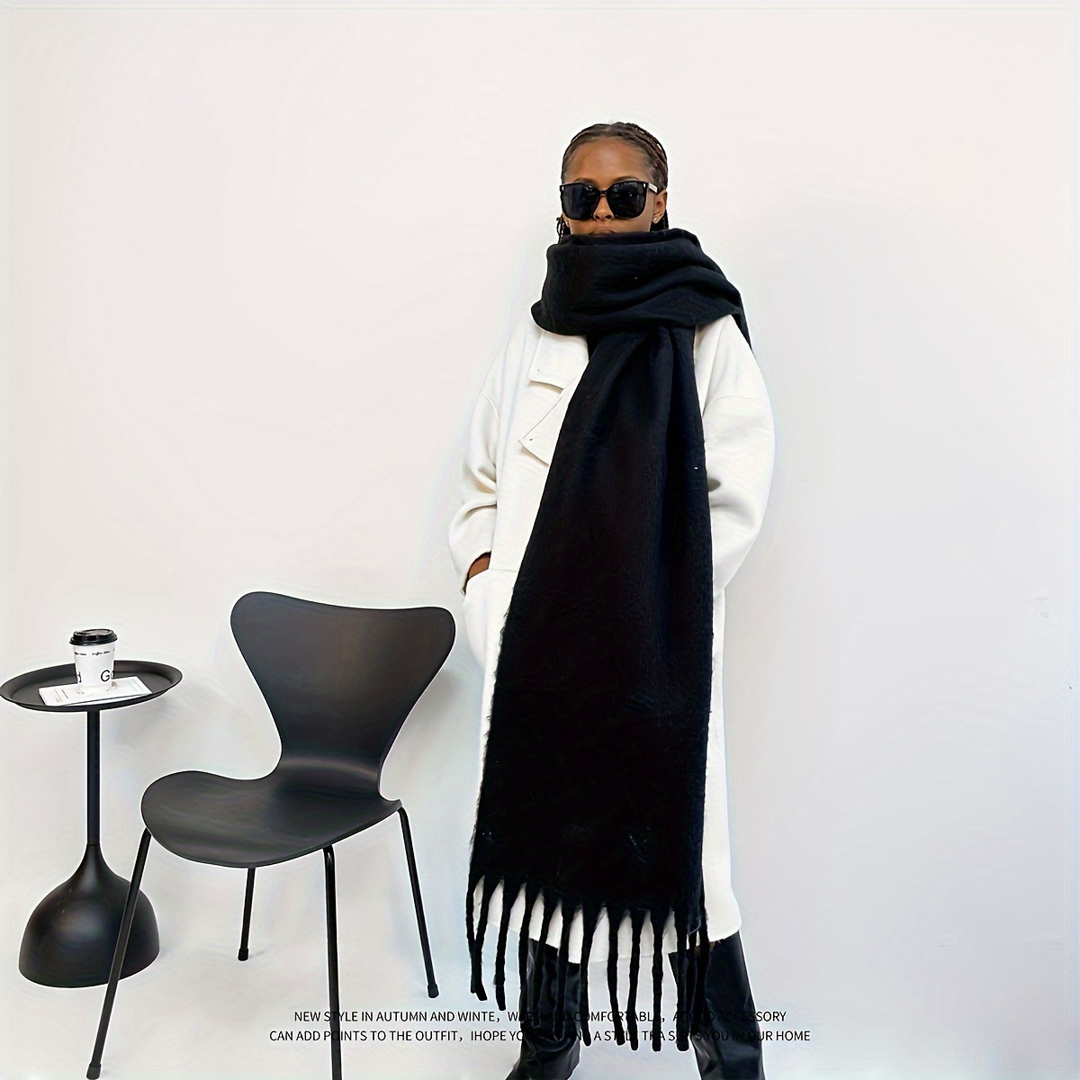 A18 2025 New Cross-Border European & American Fashion Scarf for Women - Solid Color Mohair, Trendy Stylish Warm Shawl, Wholesale