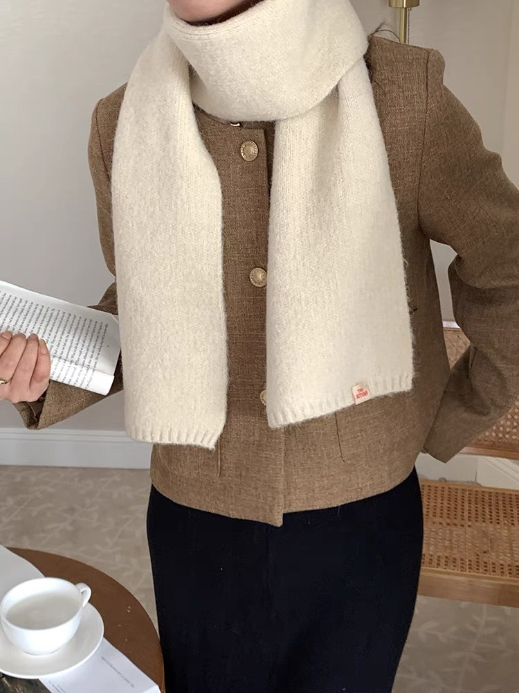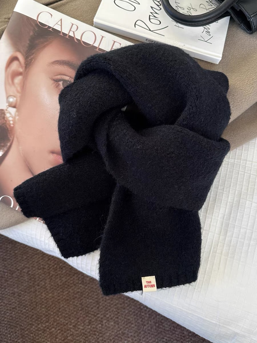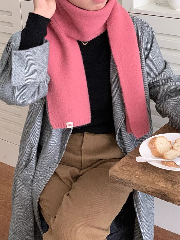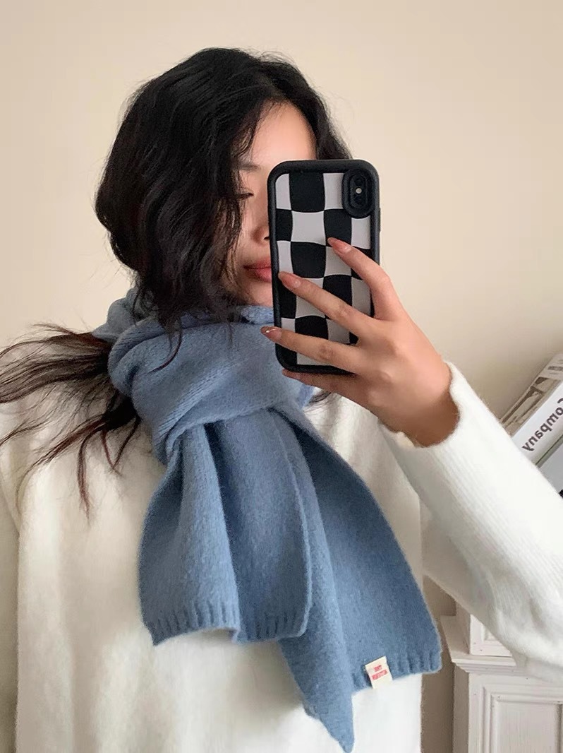 A21 Solid Color Scarf Women's New Style for Autumn and Winter Korean Style Versatile Knitted Wool Warm Scarf Factory Direct Sale