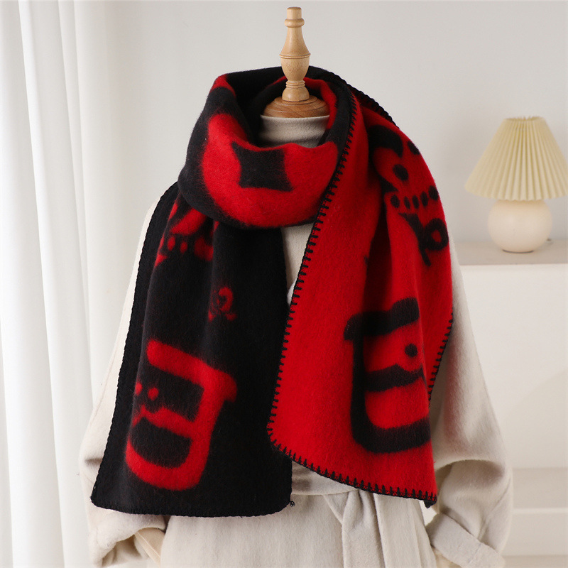 A29 European & American Style High-End Casual Autumn/Winter Faux Cashmere Warm Windproof Fashion Versatile Shawl Collar Scarf for Women