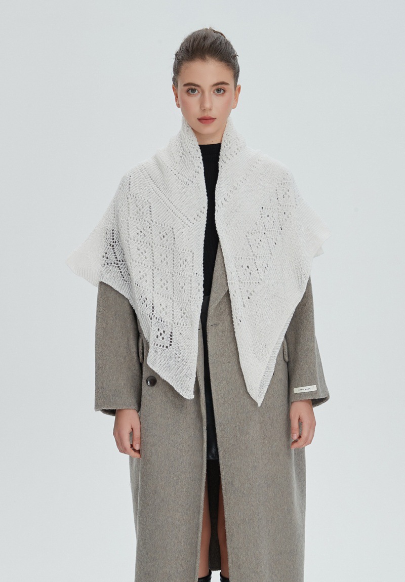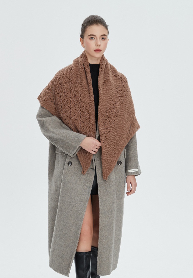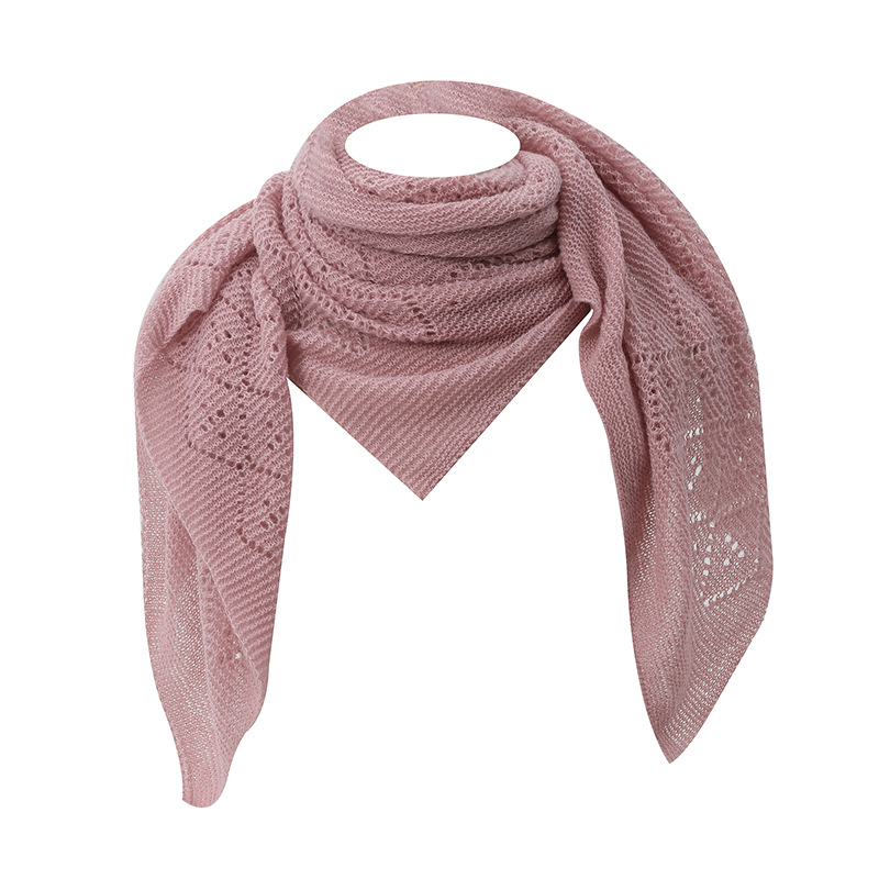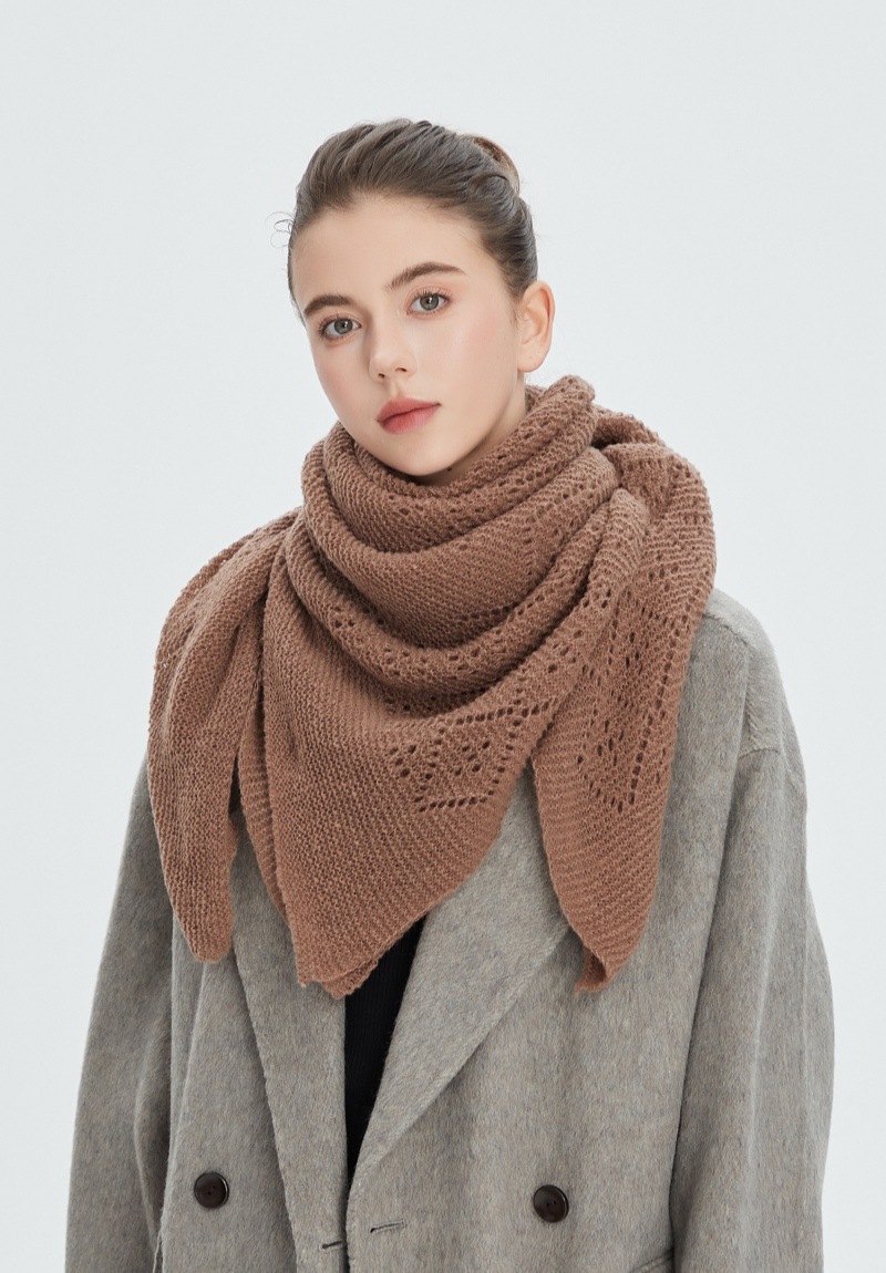 A31 Amazon Bestseller 2025 New Women's Hollow-Out Solid Color Knitted Square Scarf - Autumn Winter European & American Style