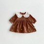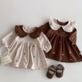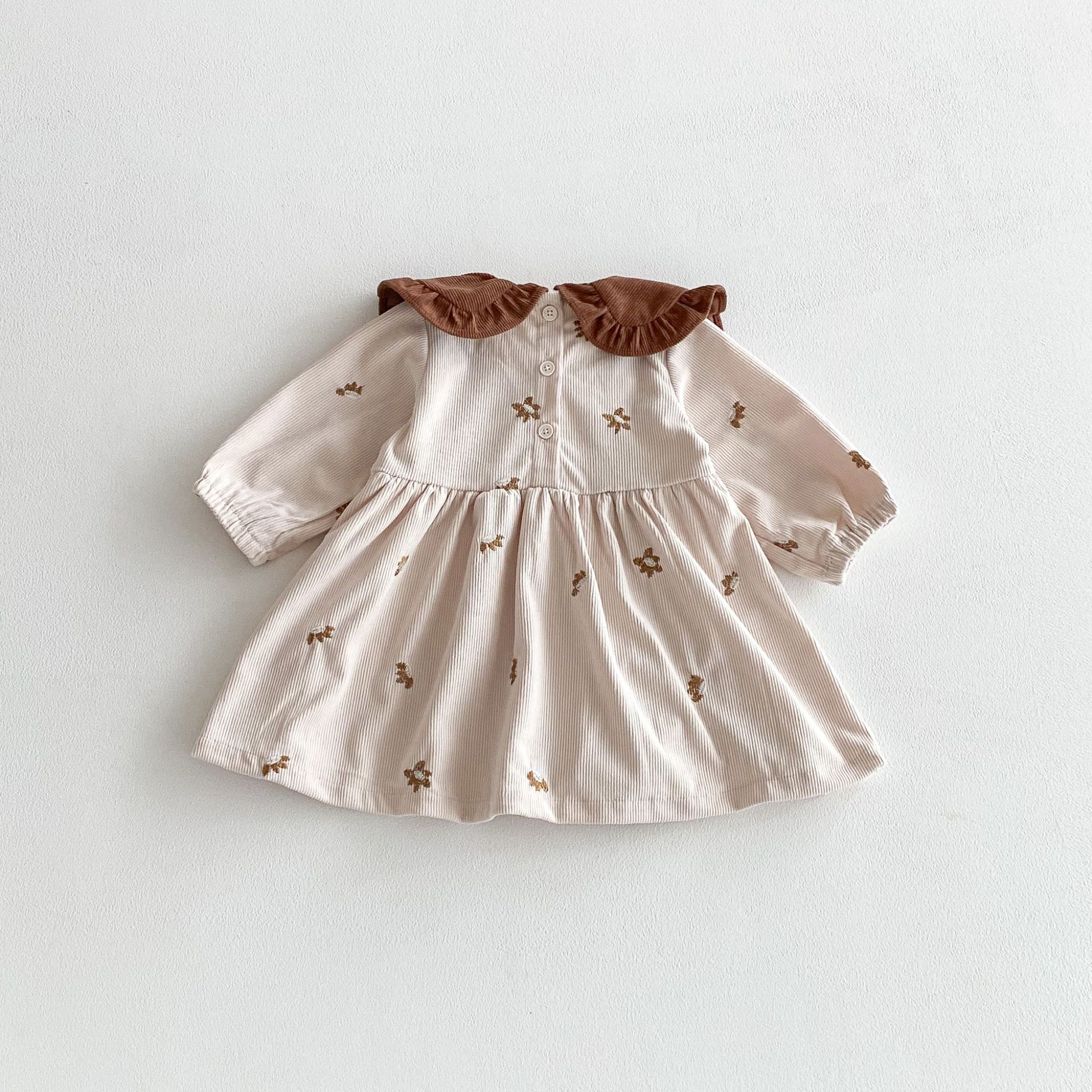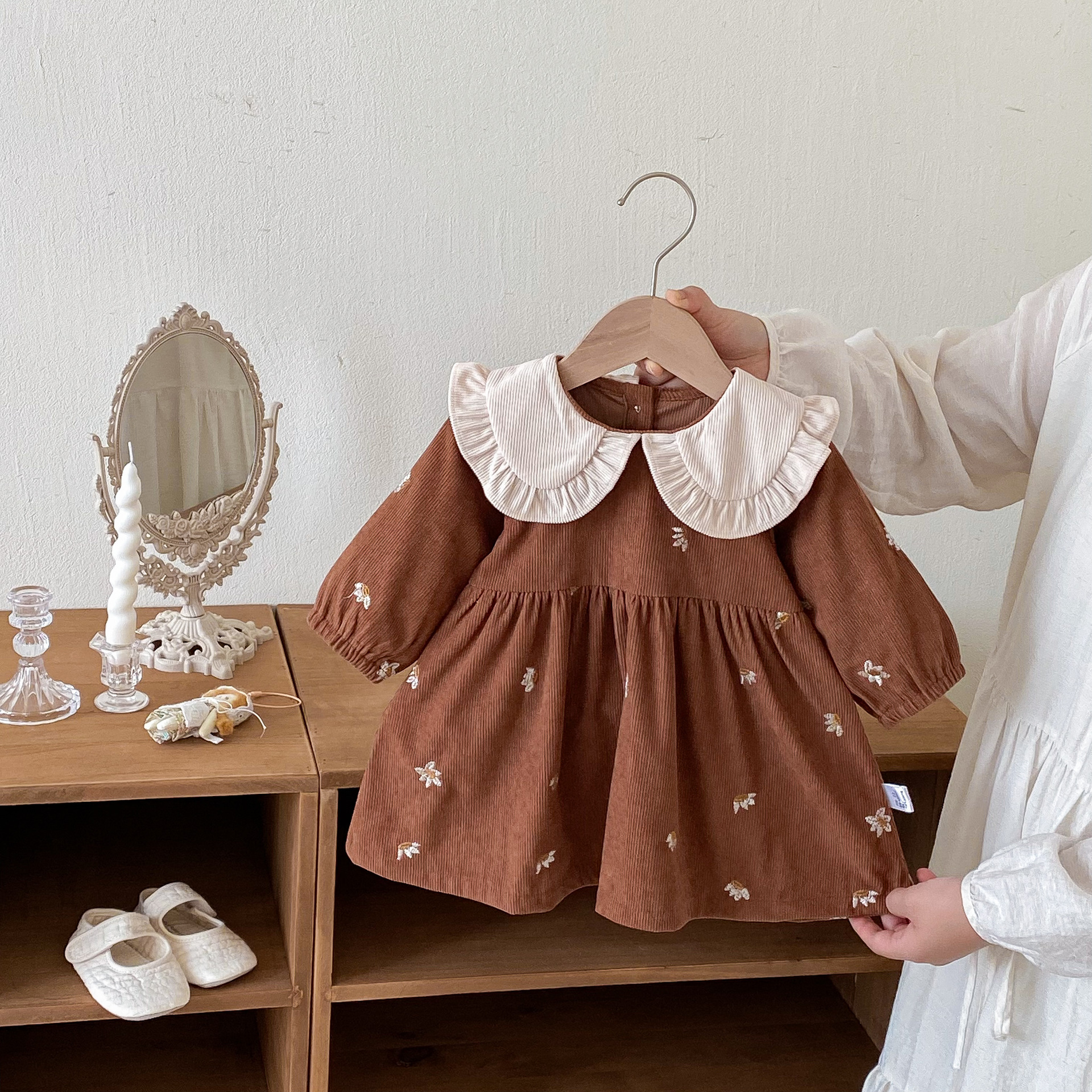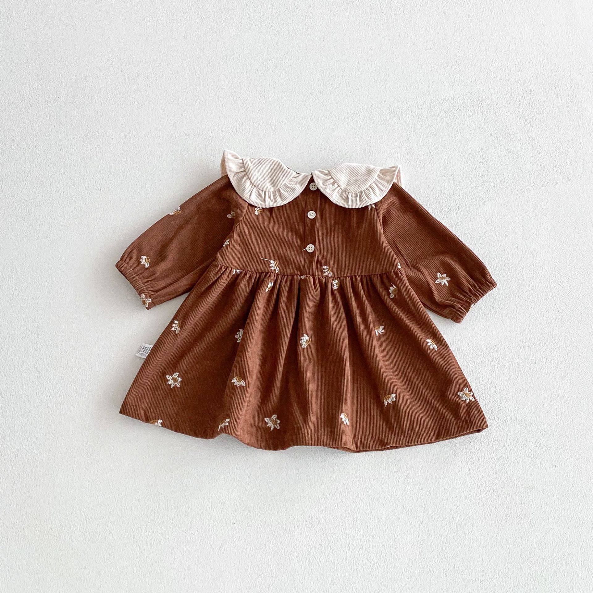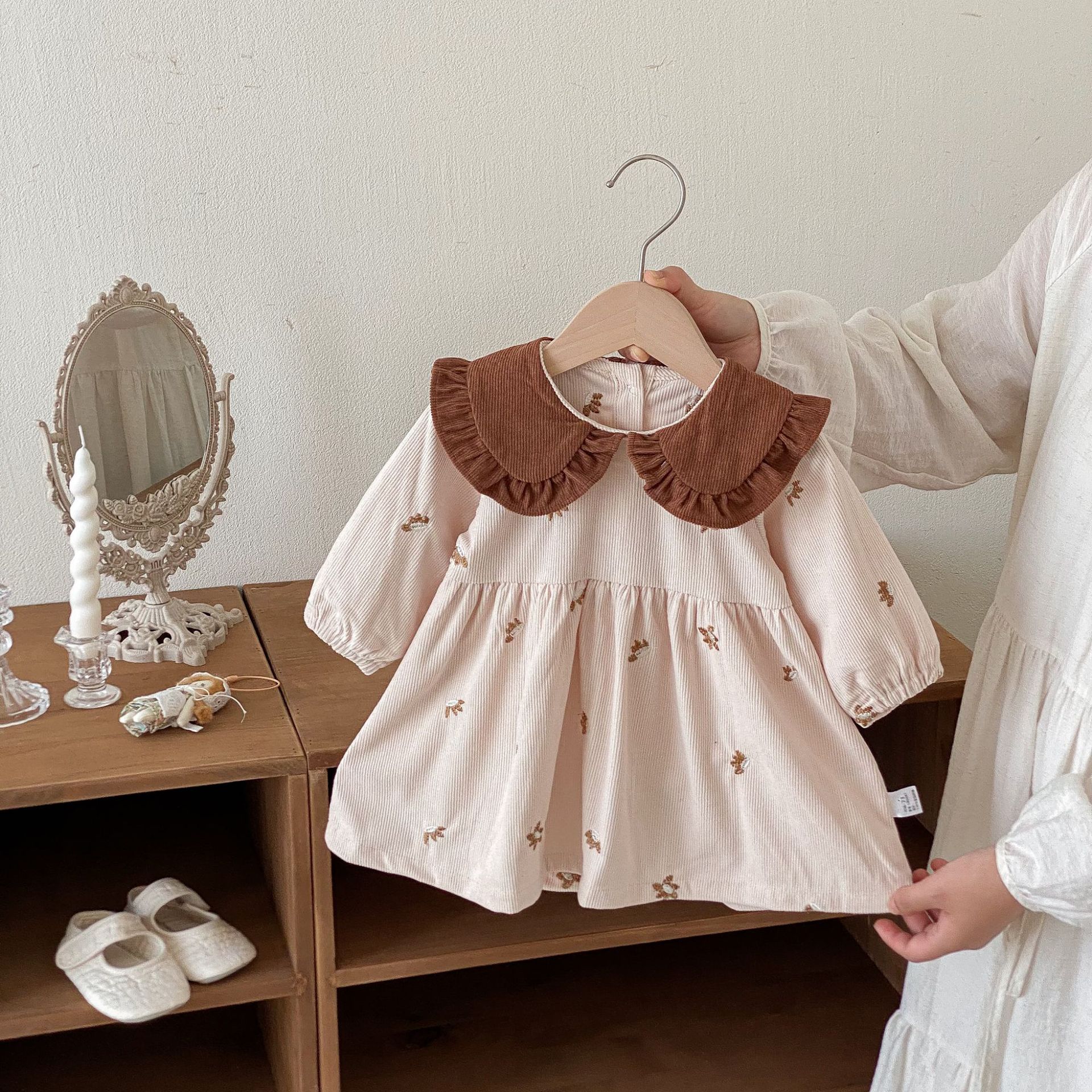 A70 2025 Girls' Ins Korean Style Dress Collared Color Block Floral Embroidery Toddler Spring Autumn New Princess Dress