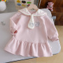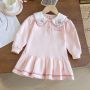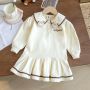 A71 Girls' Cute Dress 2025 Autumn New Style Cartoon Embroidery Princess Dress Toddler Preppy Style Doll Collar Skirt