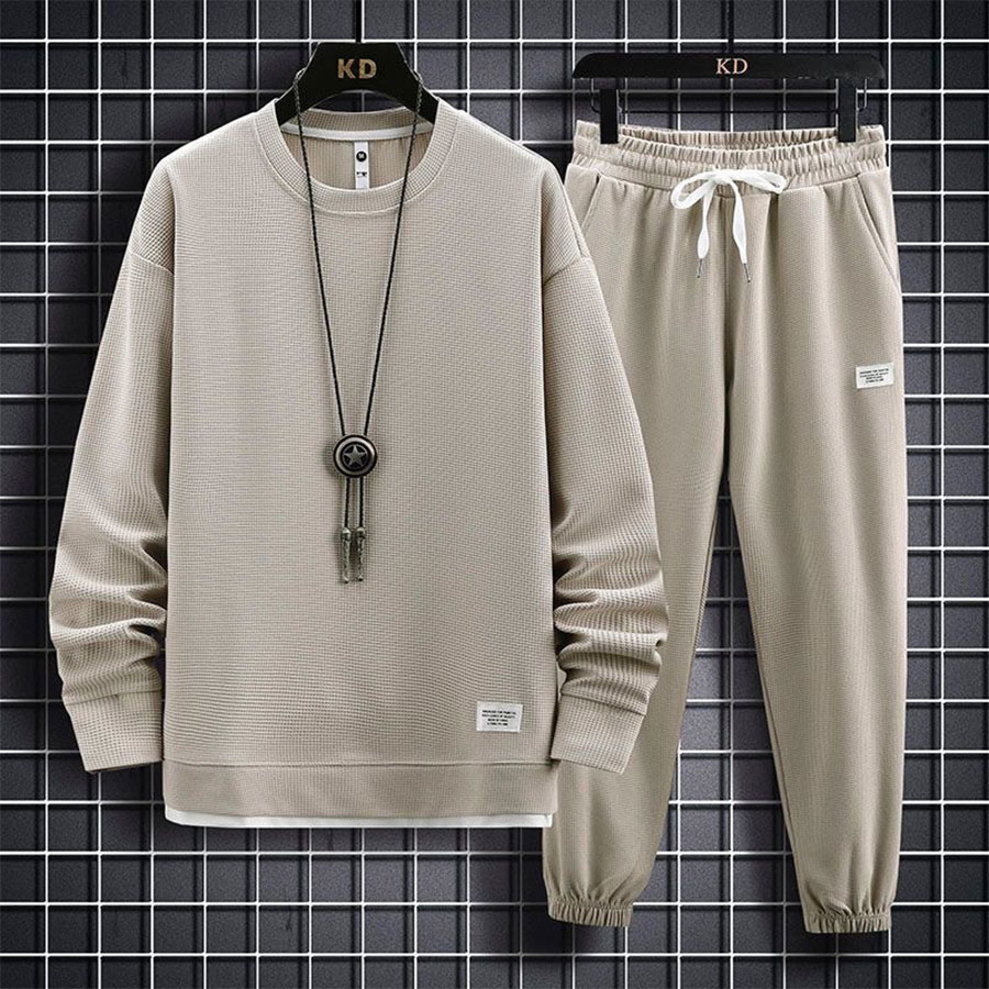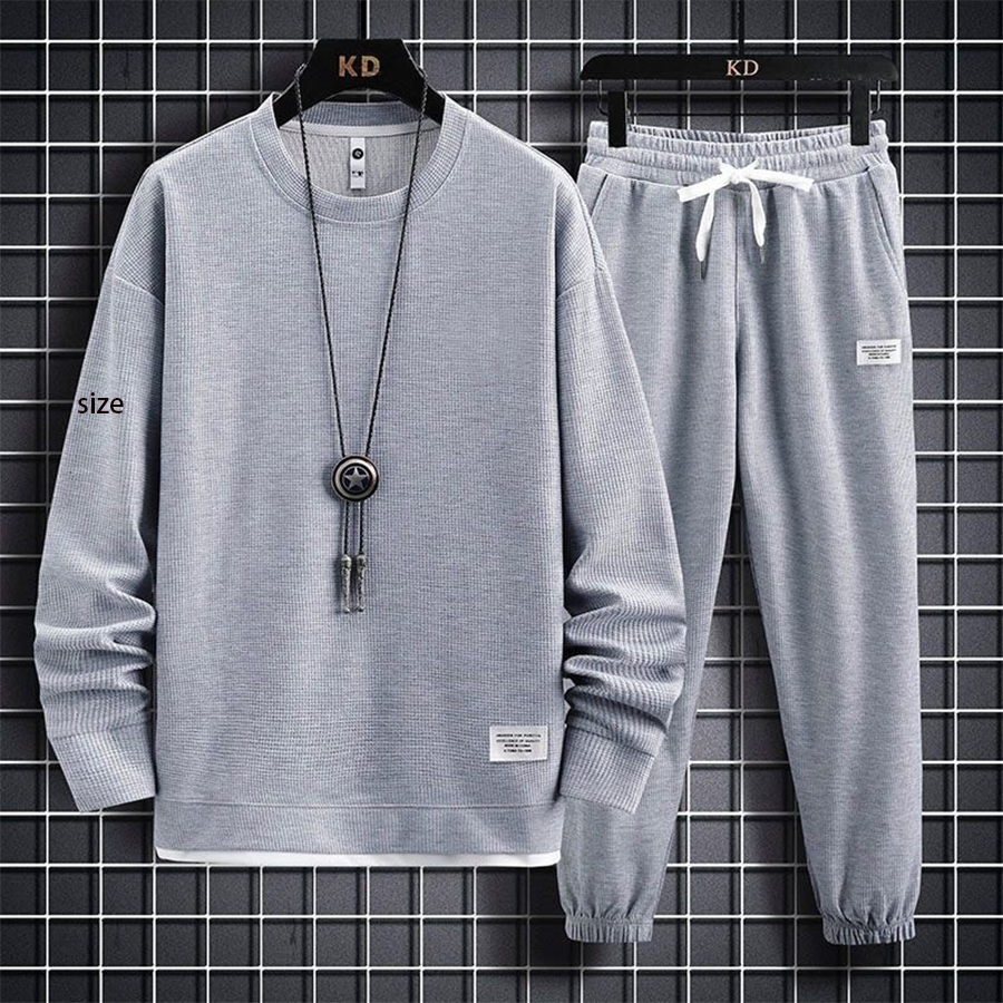 04 Waffle suit autumn new casual sports long-sleeved trousers two-piece set